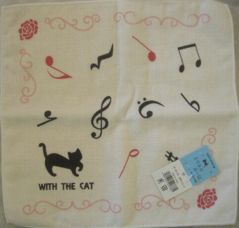 【音楽雑貨】★ガーゼタオル クロネコと音符 ピンク KF-361 ハンカチ